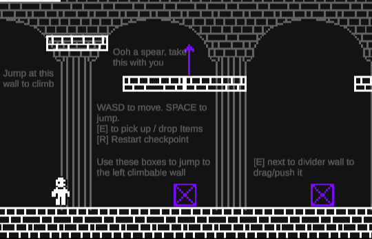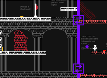 Welcome to The Wall, a puzzle platformer where you work your way up a tower while using a wall to reveal the past/present and help you on your way up. Grab your sturdy spear (or bomb) and blast through this monochrome inspired world!